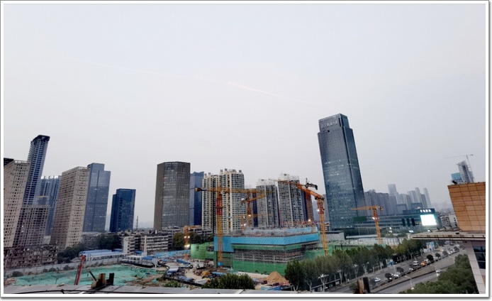 建筑外形以汉字“门”为蓝本进行创作设计,有江城之门一称,它是武汉的地标性建筑。目前两座塔楼即将进入合拢阶段。工地实景图