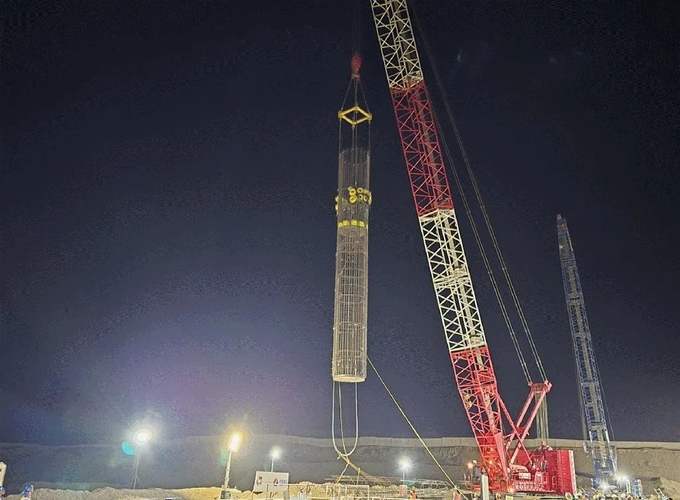 2025年1月8日,中国水电基础局承建的沙特NEOM新城桩基项目完成桩径2.5米、深度106.16米灌注桩施工,为目前中东区域最大最深桩基!